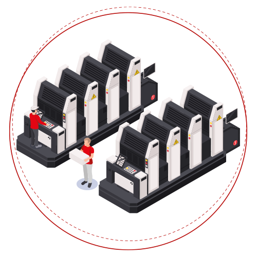 La prensa es la segunda etapa en el flujo del proceso productivo. Nos especializamos en proyectos impresos que requieren calidad y un trabajo minucioso, para lo cual contamos con maquinas HEIDELBERG SPEEDMASTER de procedencia alemana, además de personal calificado con años de experiencia que llevan un estricto control de calidad de cada trabajo.